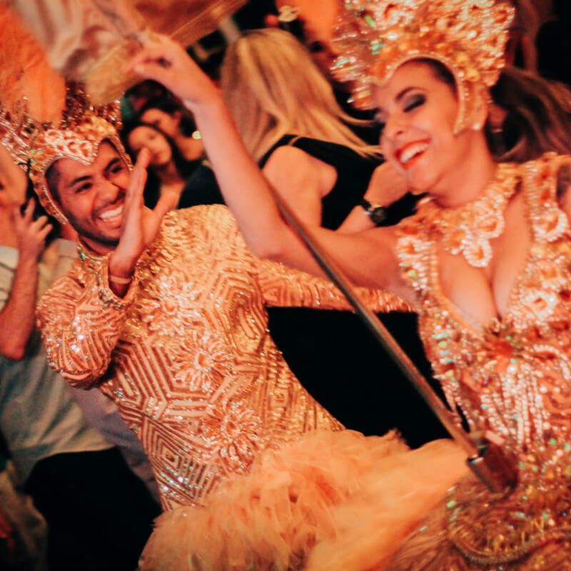 Cada evento tem uma personalidade. Nós temos um espetáculo para traduzi-la. Do pulso vibrante de uma bateria de escola de samba à grandiosidade de um desfile de gala, nossos formatos transformam seu evento em uma memória inesquecível.